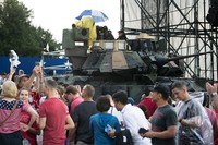 というわけで私は、米国独立記念日、軍事式典が行われるリンカーン記念堂へ猛ダッシュした。この日は朝から湿度が高く、午後から雷雨の予報だった。通行止めだらけの道をすり抜け会場に到着してまず目に飛び込んだのが、ステージの両脇にディスプレイされた2台の戦車だった。長さは約10メートル。星条旗の前に存在感たっぷりで置かれている。