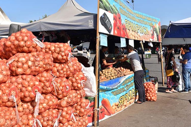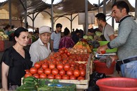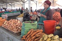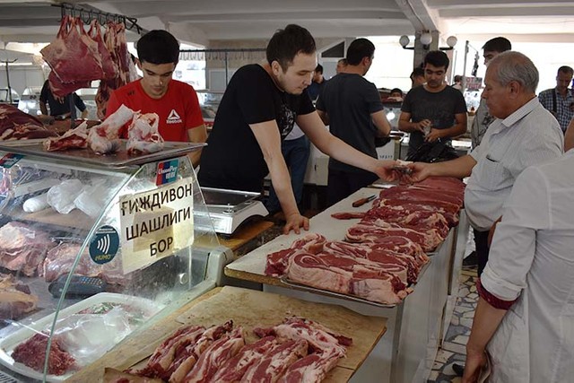 首都タシケントにある市場「チョルス・バザール」に入ると、広大な敷地に店が並び、ありとあらゆるモノが売られていた。解体されたばかりの羊や牛の肉、トマトやタマネギなどの野菜、果物、香辛料、陶器、衣類……。