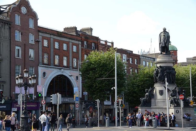 人でにぎわうダブリン市内の観光名所の一つ、オコンネル通り