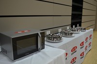 卓球台が並ぶ選手たちの練習場。入口脇に設置された選手ラウンジに並んだのが、おむすびだ。同大会に参加する日本代表選手団とスタッフ・関係者向けに全農が用意した。海外輸出向けの業務用国産米「SAKURA RICE(サクラライス)」を日本から輸入し、シンガポールの日本料理店「哲平食堂」の協力を得て、シンンガポールで炊き上げ、作った。具は「梅」「こんぶ」「高菜」「じゃこ」「肉みそ」「鮭」「のりの佃煮」「おかか」「塩」の9種類。大会開催期間中、日替わりで4種類ずつ、毎日300個のおむすびと、200個のいなり寿司を選手ラウンジ、運営者、VIPラウンジの3カ所に届けた。