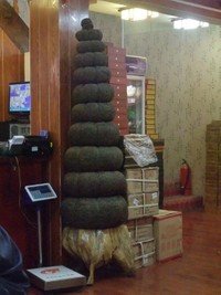 この辺りは砂漠が多くを占めるため、茶の木は育ちません。ですから、「パオパオ茶」には、茶葉はもしあれば入れる程度。雲南省や福建省といった茶どころから運ぶにしても運搬にお金がかかるので値は張ります。