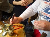 「うちのダーチャで仕込んだプラムのカンポート(ジュース)だから飲んで!」