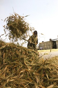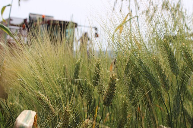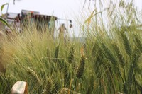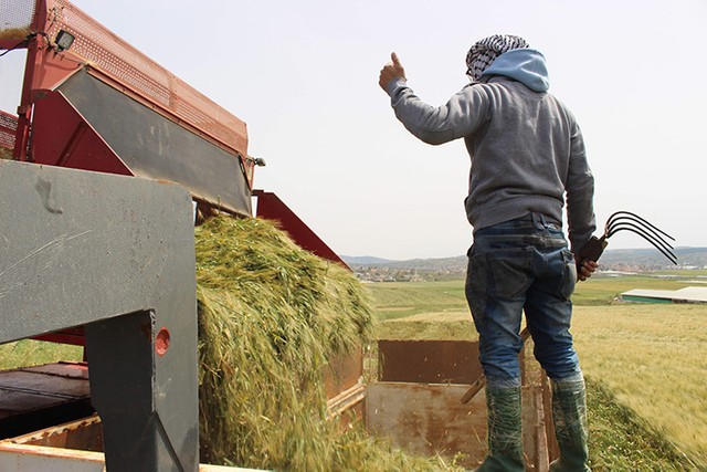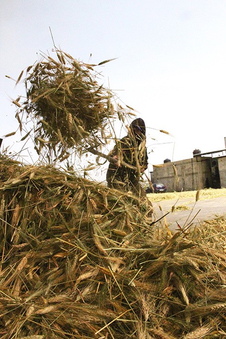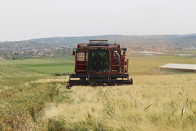 近くで収穫の全盛期を迎えた小麦畑に案内してもらった。大型のコンバインがものすごい勢いで実の詰まった青麦を収穫する真っ最中だった。イスラエルでジャンク品となっていた米国製大型コンバインを約5万ドルで購入し、修理しながら使っている。パレスチナには、先進国のような産業はほぼ皆無。部品や中古品を取り寄せ、何でも修理して必要なら自作する。