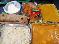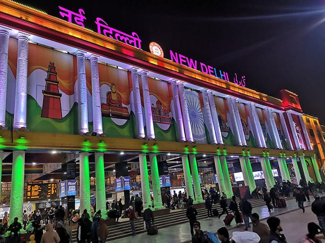 ほどなく、ベジタリアンかどうか弁当の好みを聞きにきた。夜10時ごろまで、スナックやカレーづくし弁当、アイスクリームを次々に持ってきてくれた。消灯の前には茶封筒に入ったぱりっとしたシーツが配られた。車内は家族連れも多い。子どもが走り回ったり、泣き声をあげたりしている。子どもの気配やあやす親のささやきに、安心させられた。ぐっすり眠っているうちにニューデリー近郊のグルガオンを通り過ぎていた。前の晩に親切に食事の手配などを手伝ってくれた前の席の二人組は、すでに身なりを整えている。インド人と思い込んでいたら、ネパール人だった。カトマンズから出張に来ているそうだ。インドの人からみれば、中国人、韓国人、日本人の区別がつかないのは無理もない。そんなことを思っているうちに、ニューデリー駅に到着した。7時半すぎ。すでに人でごったがえしている。それにしても、14時間近く走って、わずか数分ほどしか遅れなかった。