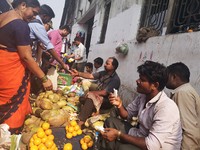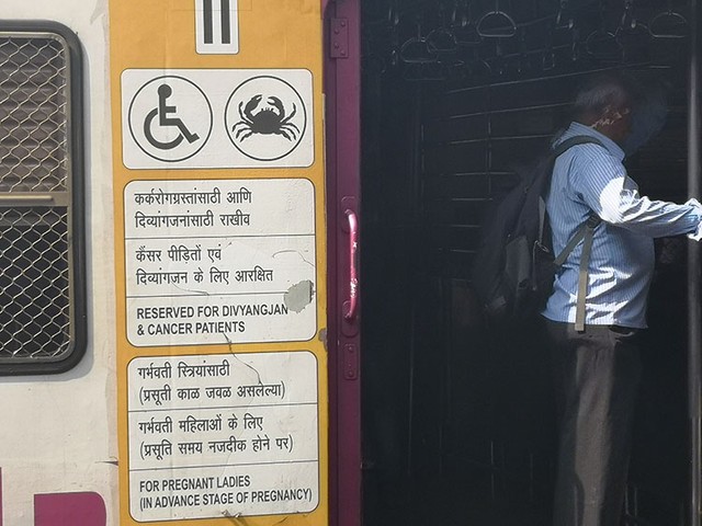 駅のホームにでてみると、大勢の乗客に圧倒された。寄せては返す人の波。顔立ちも肌の色も服装もさまざまだ。背広を着たサラリーマンや無彩色、紺、茶系のおしゃれを好む女性が多い日本の風景とは目に飛び込む明るさが違う。ムンバイの都市近郊に向けて18もあるホームのどこかから数分おきに列車が発着している。扉は開けたまま。それほど混んでいなくても扉のそばの手すりにつかまって体を半分だして乗っている人が目につく。風にあたりたいのかもしれないが、危ない。地元紙によれば、ムンバイ近郊で毎年3000人近くがさまざまな鉄道事故で亡くなっており、このうち走行中の列車からの転落死は18年、711人いたそうだ。