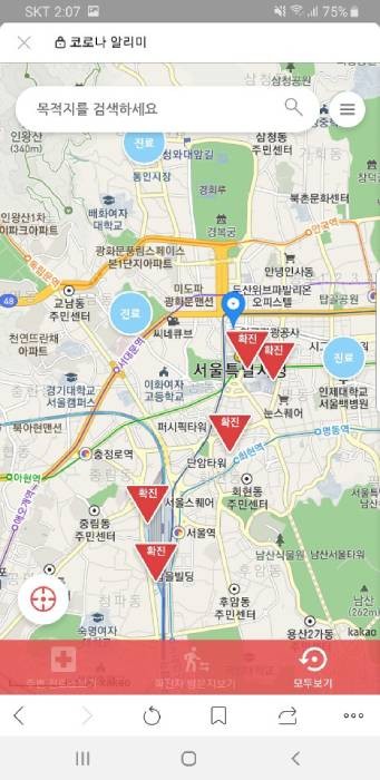 「コロナ・マップ」は、疾病管理本部から提供を受けたデータをもとに、感染者の移動ルート、隔離場所、感染者数や症状を訴えている人の数などを表示する。一時、あまりに多くの人が使用してサーバーがダウンしたほどだ。