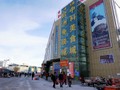 中国語とロシア語が併記された経済特区の中国側商業施設=カザフスタン・ホルゴス、村山祐介撮影