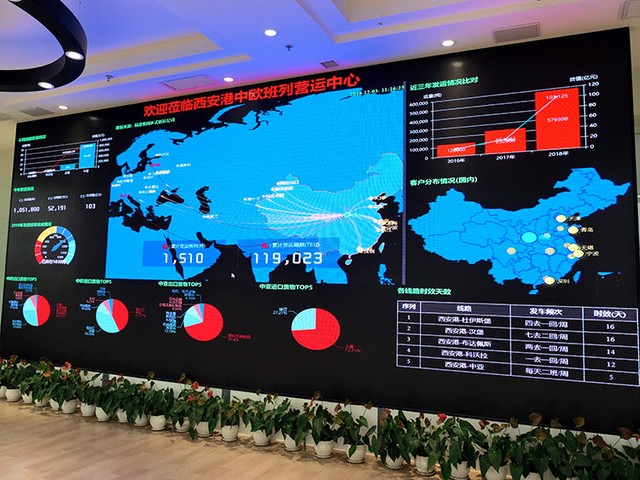 中欧班列の運行状況を示すオペレーションセンター=中国・西安、村山祐介撮影