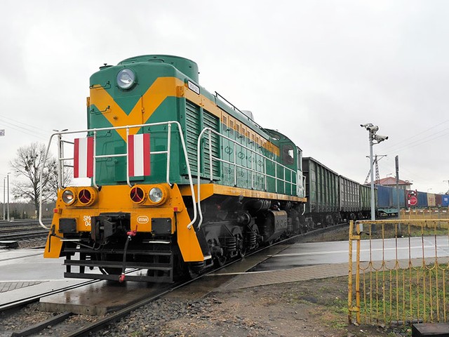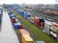 コンテナを運ぶ中欧班列=ポーランド・マワシェビチェ、村山祐介撮影