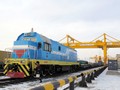 ドライポートで積み荷を降ろされていく中国からの中欧班列=カザフスタン・ホルゴス、村山祐介撮影
