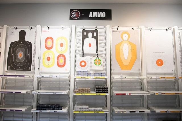 コロナ対策として、一度に店内に入れる人数を10名に限定しているとはいえ、入り口には入店を待つ列ができていた。私もマスクと手袋を着用。ソーシャル・ディスタンスを守るよう神経を使いながら、望遠レンズを抱え店内に足を踏み入れる。約560平方メートルもある広いスペースに所狭しと並べられた銃器が目に飛び込んでくる。上下左右、どこを見ても銃。。。