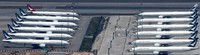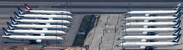 3月下旬、香港国際空港を望む山に登った。急な坂道を息を切らせて駆け上がること1時間。眼下に広がる駐機場に、運休や減便で行き場を失った100機超の飛行機が見本市のように並んでいた。