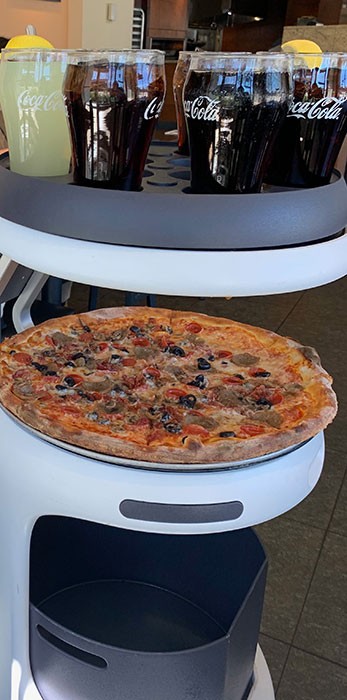 シリコンバレー、マウンテンビューにある人気ピザ店、「Amichi’s」に勤務するロボットウェイター君は、広い店内を忙しそうに働き回っていた。本体にピザやドリンクを載せ、一気にテーブルに運ぶ。この1人(1台?)で1回に20杯分のドリンクを持てる力持ち。しかも従業員4人分の仕事をこなすと店の人は重宝がっていた。コロナ時代のウェイターとして、ファミレスなど丁寧な接客サービスを必要としないカジュアル店からの問い合わせが急増しているという。今後、ホテルや病院、空港などでの活躍が期待されている。