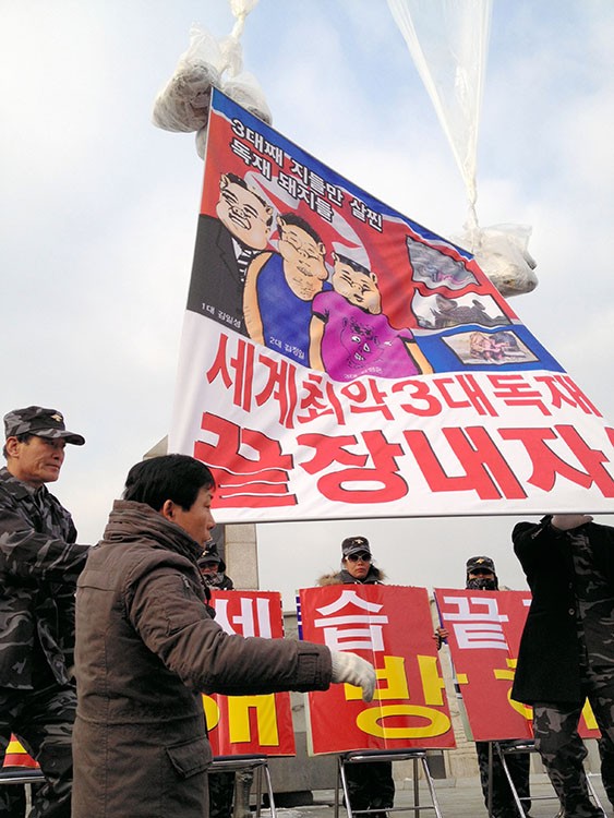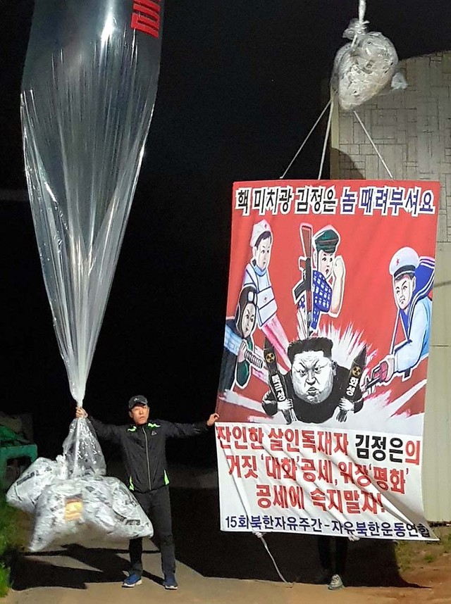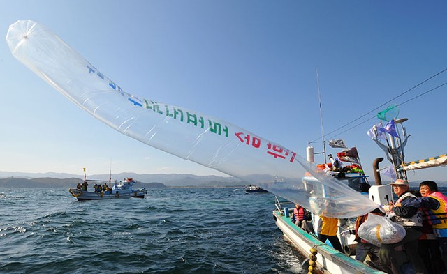 【写真】北朝鮮に向けて韓国から飛ばされる風船 World Now 更新日:2020.08.08 公開日:2020.08.08 軍事境界線に近い臨津閣の前で、北朝鮮政権を批判するビラを結びつけた風船を飛ばす人たち =2010年11月、越田省吾撮影