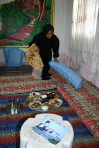 村を見渡す丘の斜面に広がるオリーブ畑には、野菜やハーブも植えられて、小鳥のさえずりだけが響く。寡黙な父親は、コーランを読むのが生き甲斐だ。静かにコーランと向き合う場所が欲しいと、農地に小屋を建てた。そこで、雨水を貯めた地下タンクから水を汲み、中東特有のどろっとしたアラビックコーヒーを振舞ってくれた。自爆テロを試みようとした娘を持つ父親。カナーン社は、日本にもオリーブオイルを輸出している。この畑で収穫されるオリーブも、日本に届けられているオリーブオイルの材料になっているという。
