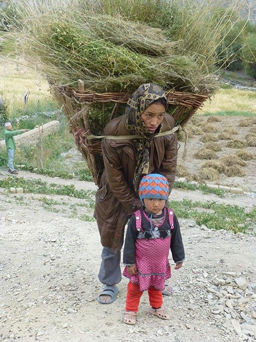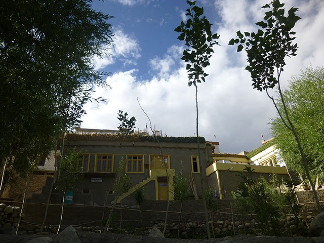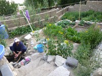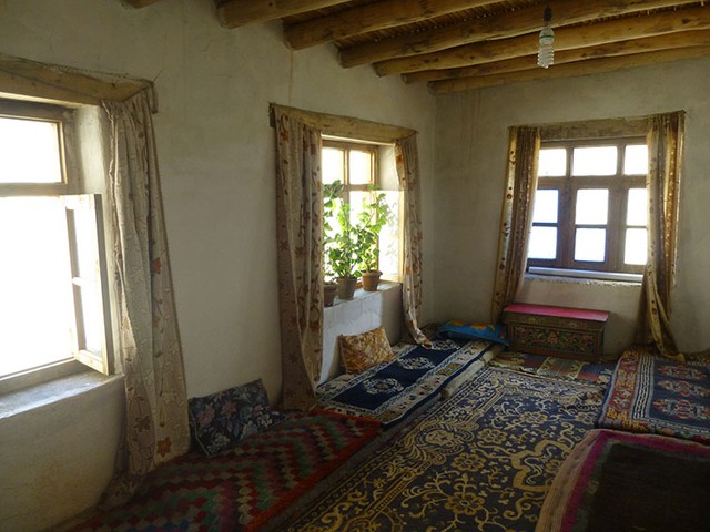 今回伺った4件は、岩壁に穴を掘ったような埋め込まれたような家、どうにか山の上の建っている家、地面に建っている家など、様々でした。最後は、がけの上に建つ、伺った中で一番標高の高いお宅にお邪魔しました。冷蔵庫はなく、貯蔵庫のような部屋に、肉も卵もヨーグルトも全ての食材が置いてありました。肉などは自然に干し肉になっていました。お爺さん、お婆さん夫婦、お嫁さん、子供たちで暮らしていました。ご主人はレーに出稼ぎに行っていました。