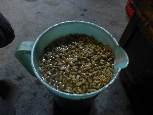 私が訪れた8月はちょうど麦の収穫時期で、この作業がとにかく面白かったですね。おばさんやお兄さん、近所の人みんなでしゃがんで、尻餅をつきそうな体勢のまま根から引っこ抜く。それをそのまま1日、2日乾燥させて、箱の内側にゴツゴツとした靴のゴム底を貼り付けたものに叩きつけてしごき、脱穀するのです。水牛の後ろにローラーをつけ、ノロノロと歩かせて脱穀している人もいましたね。そういう風景が今も続いていること自体が本当の悦び。私もお手伝いをさせていただきましたが、結構大変でしたよ。