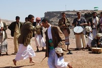 短刀ジャンビーアを腰に付けて闊歩するイエメン男性