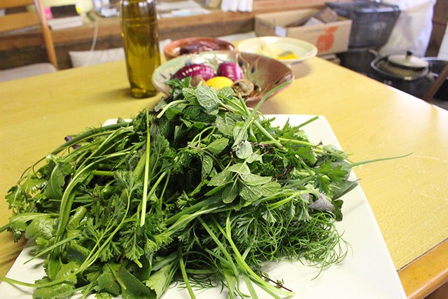 中東料理には、大量の香草を使うサラダの傑作がある。レバノンやパレスチナ、シリアなどで食べられているパセリと挽き割り小麦のサラダ、タッブーレである。ゴルメサブジは、大量の香草を肉や豆とともに煮込むもので、大量の香草を使った温かい料理の傑作だ。