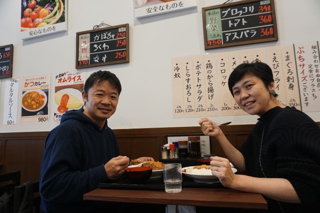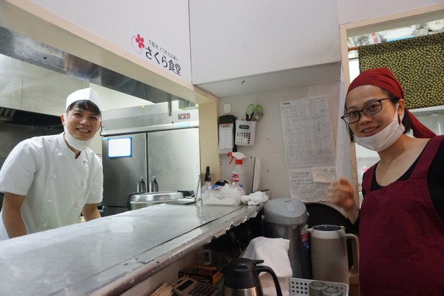 さくら食堂で食事をしていた3人組の男性に話を聞いた。近くの現場で工事をしているといい、「今日はコンビニ飯じゃない温かいものが食べたいと思って」と、2人はロースショウガ焼き定食をほおばっていた。別の男性は、「ここに来るのは2回目。最初に来たとき、みそ汁がおいしいなと思ってまた来た」と、ズンさんのみそ汁の味をほめた。シェフはベトナムの人なんですよと言うと、「うん、わかってたよ」と言い、「今はラーメン屋とかが多い。昔は定食屋ばかりだったけど、家庭的な味のものを出すところが少なくなったよね」。別のカップルは、カツカレーを注文して仲良く食べていた。「近所の食堂がちょうどなくなってしまって困っていた。このお店ができてほっとした」と笑顔を見せた。