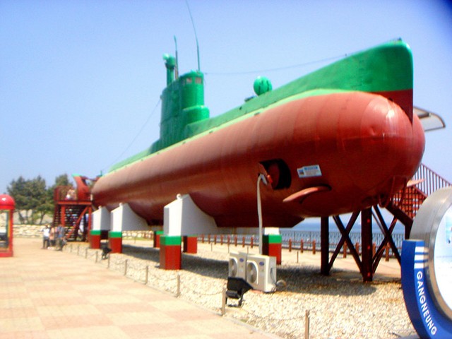 韓国・江陵市の統一公園に展示されている北朝鮮の潜水艦