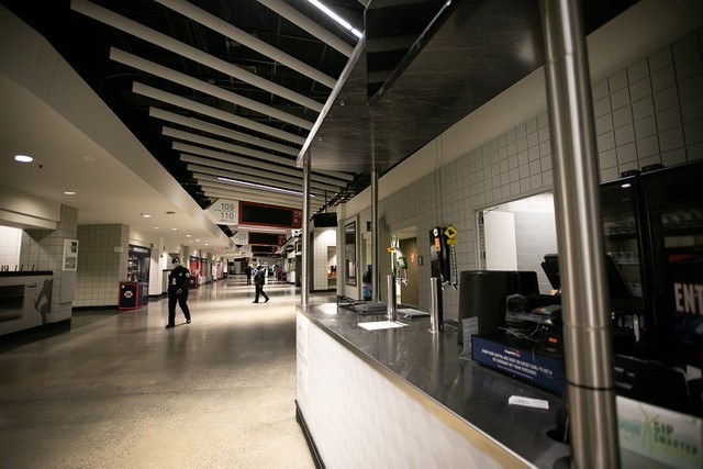 試合後、帰ろうと廊下に出ると、なんだか寂しい気持ちがこみ上げた。普段、ビールやホットドックを買うために並んだり、チームのグッズやジャージーをまとって楽しそうに歩いたりする観客で溢れる廊下には、数人の警備員の姿しかない。飲み物の自動販売機の灯りだけが、薄暗い廊下で光っていた。
