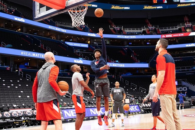 割れんばかりにアリーナを包む観客の歓声。大規模コンサートのような熱気。エネルギッシュで華やかに踊るチアリーダー。登場する選手たちがファンサービスで行うハイファイブ。試合後、身動きも取れないほどの距離で選手に迫る囲み取材……。このような「ノーマル(通常)」が米プロバスケットボール(NBA)の試合から消え、1年が経とうとしている。3月4日、私はその様子を取材するため、ウィザーズの「ホーム」、ワシントンの中華街にあるキャピタル・ワン・アリーナへ猛ダッシュした。