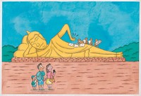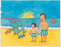 本原画展は昨年から各地で開催されているが、今回は3点の新作も公開。「すべての人に健康と福祉を」の項目をテーマにした作品「サバンナの診療所」には、ドクターの診察を待つ列に並び、「うちの子も診てちょうだい」の表情を浮かべているライオンがなんともかわいらしい。
