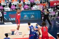 ロサンゼルス・クリッパーズとの試合でプレーする八村選手(中央上)=ワシントン、ランハム裕子撮影、2021年3月4日