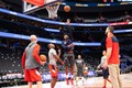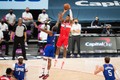 ロサンゼルス・クリッパーズとの試合でシュートするビール選手=ワシントン、ランハム裕子撮影、2021年3月4日