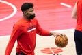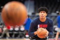 ロサンゼルス・クリッパーズとの試合前、練習に臨む八村選手=ワシントン、ランハム裕子撮影、2021年3月4日