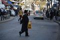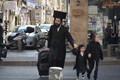 安息日のための特別な毛皮製の帽子をかぶった超正統派ユダヤ教徒の男性。子だくさんの家庭が多く、男性が子どもを連れて歩く姿もよく見かける=2021年3月5日、エルサレムのメアシェアリーム地区、高野遼撮影