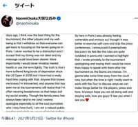 私は邪魔になりたくなかったし、(記者会見拒否の公表が)理想的なタイミングでなかったことや、メッセージももっと明確にすべきだったことは受け止めている。それ以上に大事なのは、私はメンタルヘルスを軽視したり、この言葉を軽い意味で使ったりはしない。