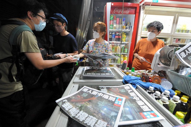 香港の民主化を支持してきた日刊紙「リンゴ日報」が23日夜、最後の編集作業を終えた。編集局には記者たちが集まり、仲間たちをたたえ合った。24日付朝刊の発行部数は、普段の10倍以上の100万部。繁華街のニューススタンドでは未明から、「記憶に残したい」という市民らが長蛇の列を作った。