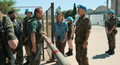 難民が逃れた国連施設に押し寄せるセルビア人勢力(左)=「アイダよ、何処へ?」より。©2020 Deblokada/coop99 filmproduktion/Digital Cube/N279/Razor Film/Extreme Emotions/Indie Prod/Tordenfilm/TRT/ZDF arte