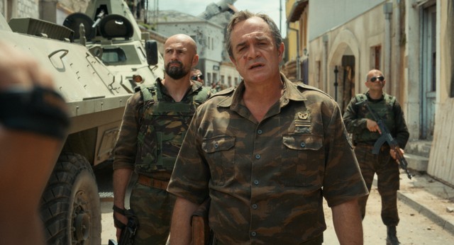 スレブレニツァ虐殺事件を主導するラトコ・ムラジッチ司令官。演じるのはセルビアの俳優ボリス・イサコヴィッチ氏で、主人公アイダを演じたヤスナ・ジュリチッチ氏とは夫婦。出演をめぐり、2人は政治的な圧力を受けているという=「アイダよ、何処へ?」より。©2020 Deblokada/coop99 filmproduktion/Digital Cube/N279/Razor Film/Extreme Emotions/Indie Prod/Tordenfilm/TRT/ZDF arte