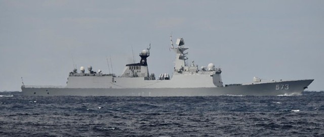 中国海軍のルーヤンⅢ級ミサイル駆逐艦=防衛省統合幕僚監部提供