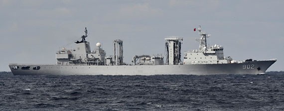 中国海軍のフチ級補給艦=防衛省統合幕僚監部提供