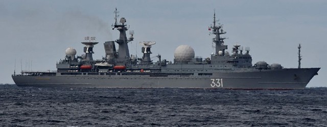 ロシア海軍のマルシャル・ネデリン級ミサイル観測支援艦=防衛省統合幕僚監部提供