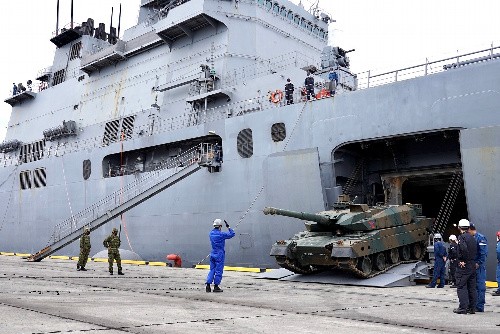 【写真】大規模な陸上自衛隊演習で移動する戦車