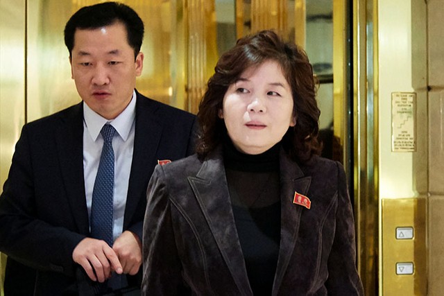 北朝鮮の崔善姫(チェ・ソンヒ)外務次官(左)。米朝首脳会談が行われたシンガポールで=2018年6月10日、ランハム裕子撮影
