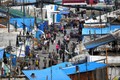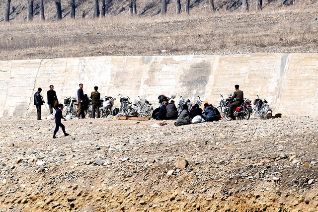 砂金を採取するため、中朝国境を流れる鴨緑江の沿岸に集まった北朝鮮の人々。この後、ここで潜水服などに着替えていた=姜東完教授提供