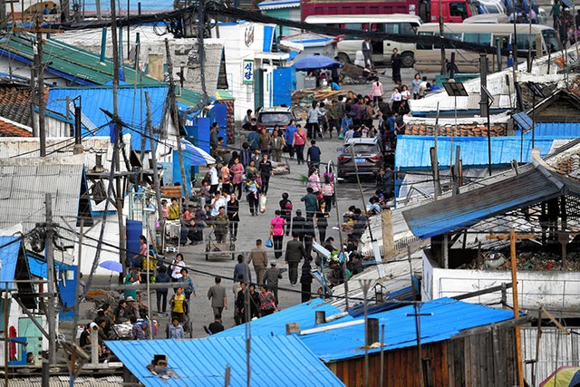 中朝国境に近い両江道恵山市の通りでは、野菜や卵などが売られていた=姜東完教授提供