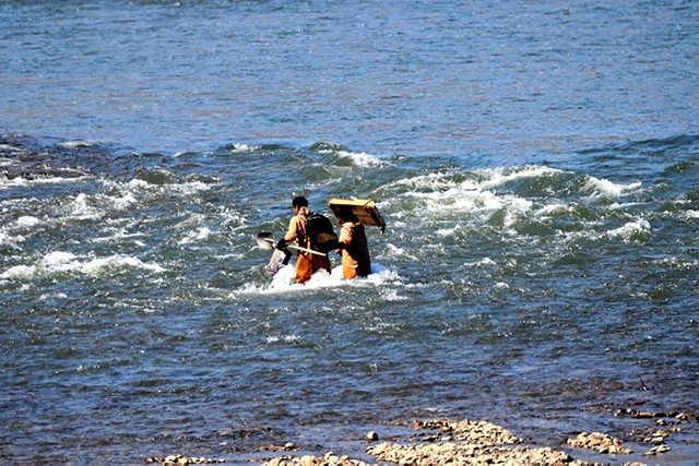 砂金を採取するため、中朝国境沿いの鴨緑江に入る北朝鮮労働者=姜東完教授提供