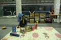 ハルキウの地下鉄「メトロブディブニキウ」駅で遊ぶ避難中の子ども=5月、釣崎清隆さん撮影