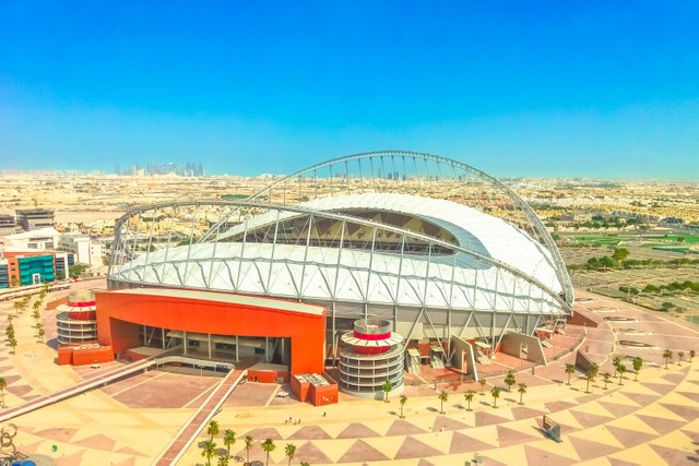 ハリファ国際スタジアム=bennymarty/iStock Editorial /Getty Images Plus:ゲッティイメージズ提供