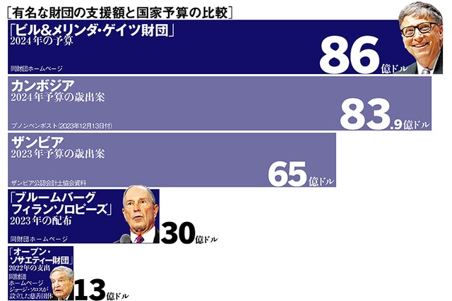 【グラフで見る】世界的な大富豪が設立した財団の支援額と国家予算の比較