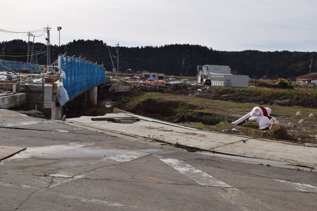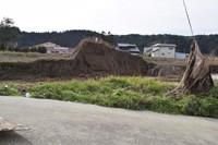 2024年元日に最大震度7の能登半島地震に見舞われ、さらに同年9月の豪雨災害で住民の避難所生活が長期化した石川県珠洲市。能登半島の先端にある同市を昨年12月25日に訪れると、山の斜面が崩れて山肌があらわになったままで、瓦屋根にブルーシートがかかった家が目立った。豪雨で市の中心部を流れる若山川が氾濫し、流されて傾いたままの家屋も残っていた。