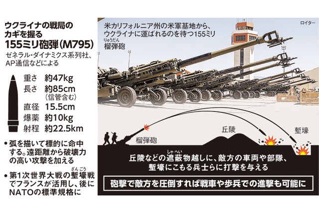2. 戦局を左右するのは「155ミリ砲弾」で、欧米各国がウクライナに供給している