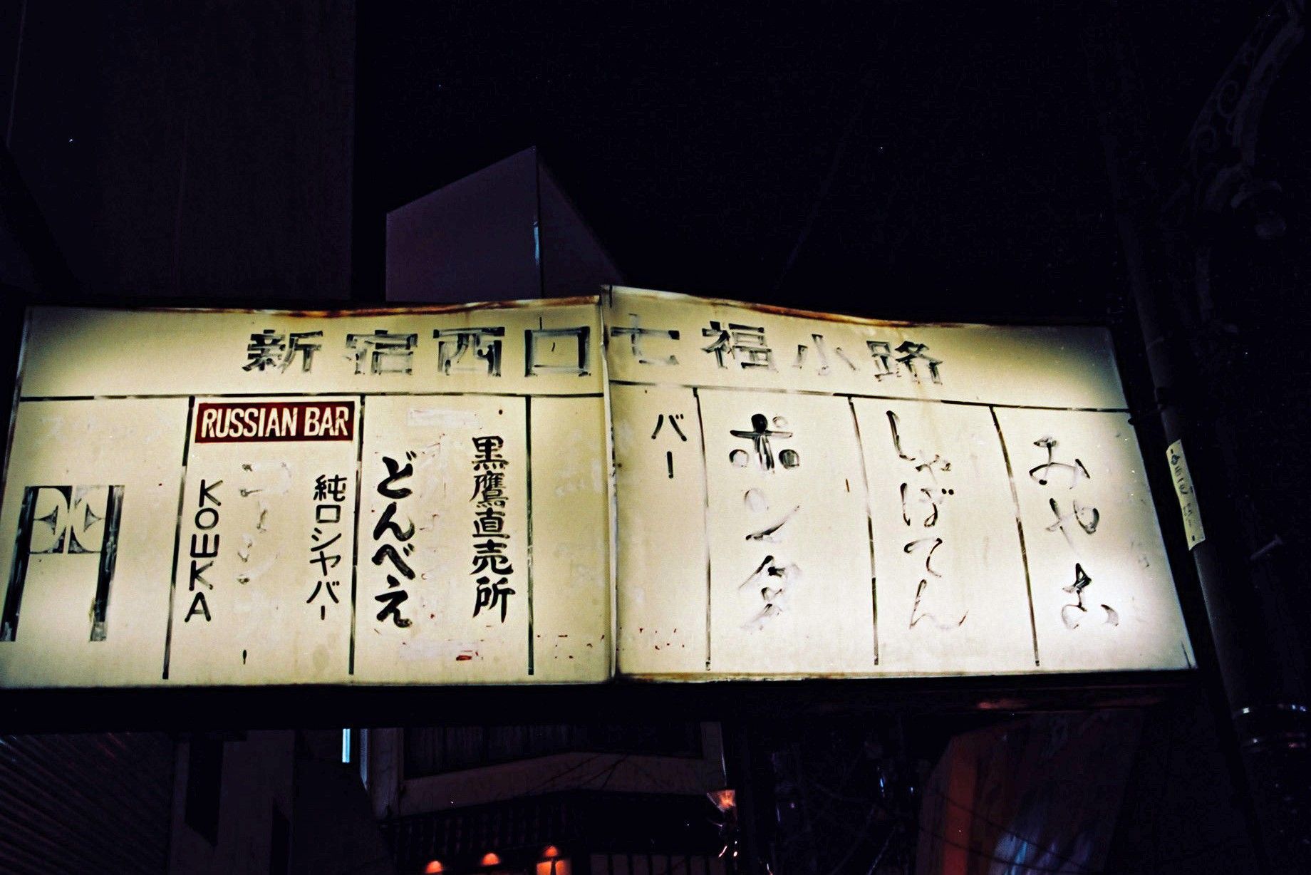そんなある夜、新宿駅西口の線路脇に「新宿西口七福小路」という細くてどん詰まりの路地に差し掛かった。7軒の小さな飲み屋が並んでいるのでこの名がついたと、後に聞いた。小路の入り口に立っていたアーチの看板に「純ロシヤバー コーシカ」と書かれているのが目にとまった。